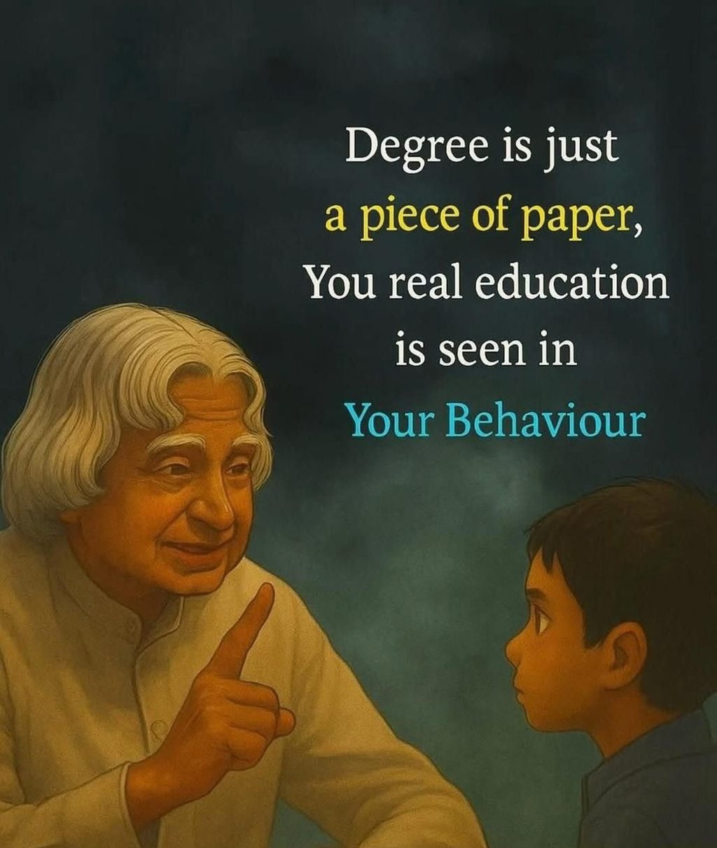 In today’s world, education is often measured by the degrees we hold and the titles we earn. But true education goes much deeper. As the inspiring quote in the image says, “Degree is just a piece of paper; your real education is seen in your behaviour.” This thought beautifully reminds us that while academic achievements are valuable, our conduct and character define our true learning.