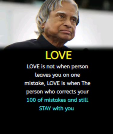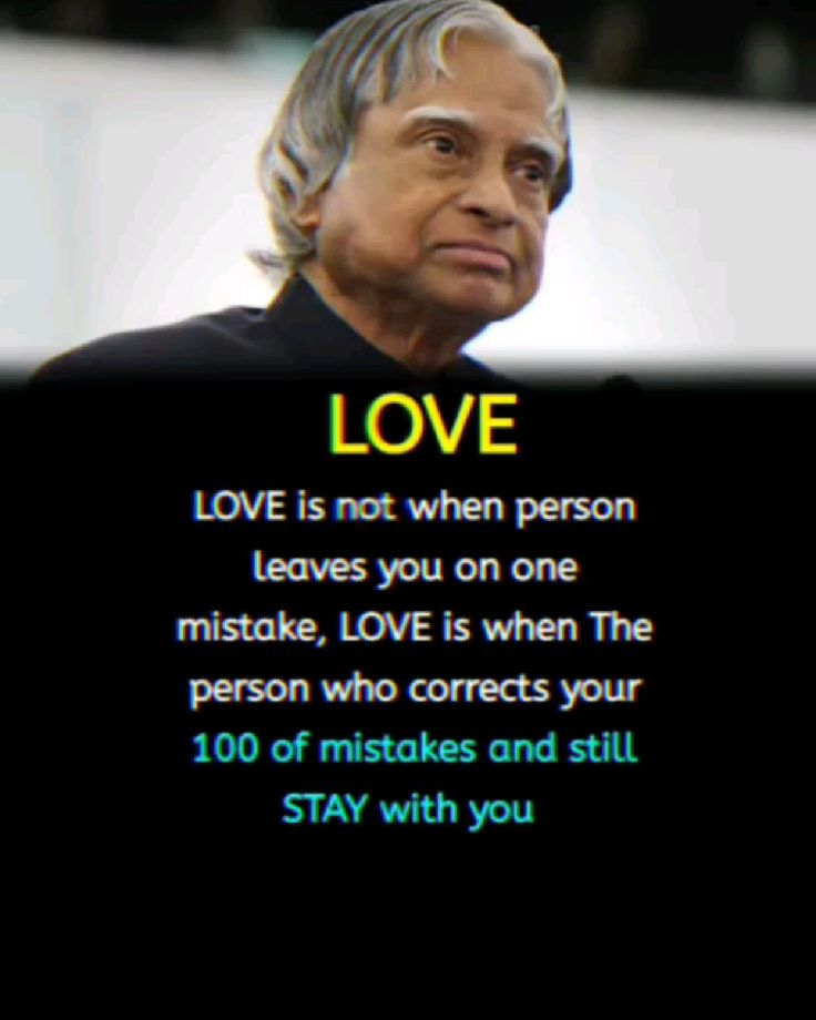 “LOVE is not when a person leaves you on one mistake, LOVE is when the person who corrects your 100 mistakes still stays with you.”