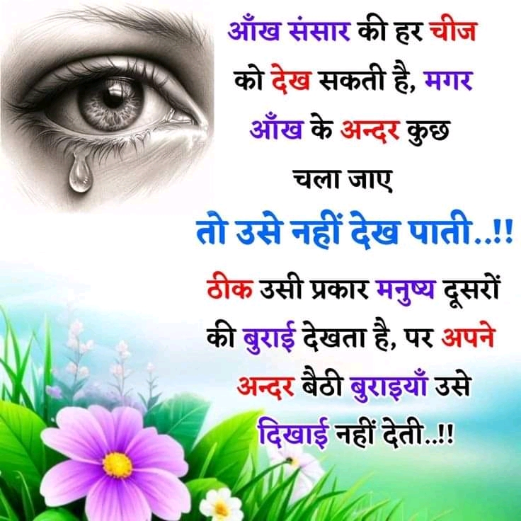 Our eyes are powerful—they can see everything around us, from the smallest detail to the largest landscape. But when even a tiny particle enters the eye, it becomes invisible. This simple truth mirrors human nature: we are quick to notice others’ flaws but blind to our own.